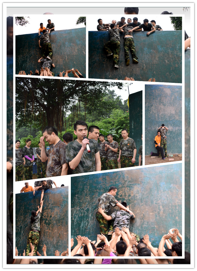 翻過這片墻,你就畢業了!稱之為畢業墻。在這一個項目里,最能呼應我們的主題——眾志成城!